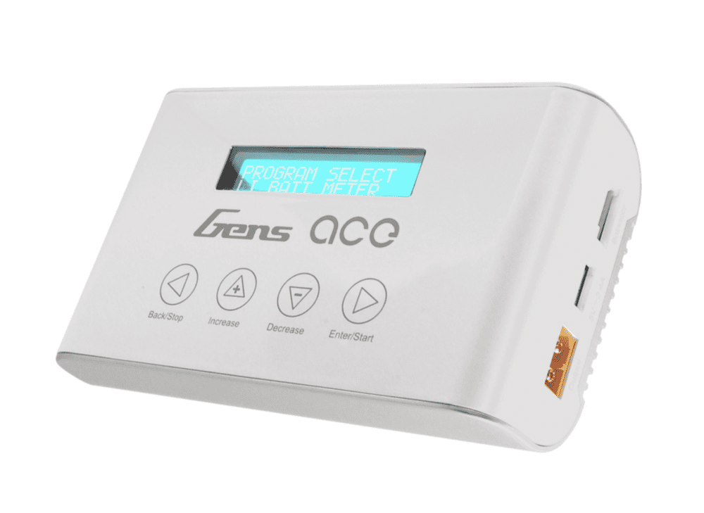 Cargador de equilibrio inteligente GensAce Imars III Pro 10A, capaz de tasas de carga de 10 amperios, versatilidad de voltaje mundial de 100 V-240 V, con 100 vatios de potencia. Es genial cargar tus FPV y baterías de coche.
