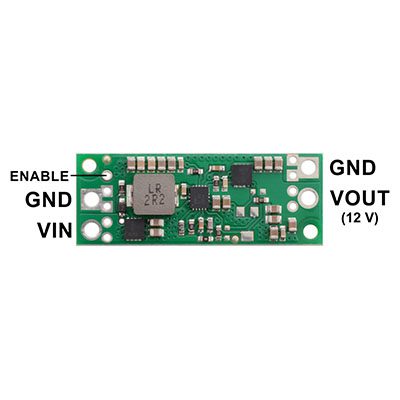 Este potente regulador elevador de conmutación síncrona genera eficientemente un voltaje de salida de 12 V a partir de un voltaje de entrada tan bajo como 2,9 V mientras utiliza una corriente de entrada de hasta 7 A. Este regulador cuenta con protección de voltaje inverso y, a diferencia de la mayoría de los reguladores elevadores, ofrece una verdadera opción de apagado que desconecta la alimentación de la carga.