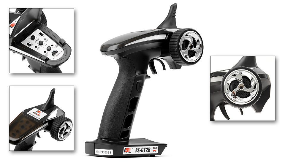 El FS-GT2B es un transmisor AFHDS de 3 canales tipo pistola diseñado para automóviles y embarcaciones. En robotica util para minisumo y Soccer.