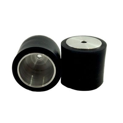 El rin de estas llantas es mecanizado en CNC y la goma es de caucho de silicona de dureza 10A o 15A.