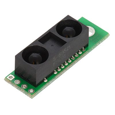 El sensor de distancia GP2Y0A60SZ de Sharp ofrece un amplio rango de detección de 4 ″ a 60 ″ (10 cm a 150 cm) y una alta tasa de actualización de 60 Hz. La distancia se indica mediante un voltaje analógico, por lo que solo se requiere una entrada analógica para interactuar con el módulo.